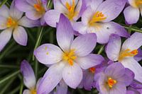 Lila-paarse krokussen bloeien volop in de lente. Een geliefde voorjaarsbloem die weer kleur geeft in de tuin.