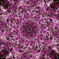 Het recept: neem een close-up van een paarse dahlia, maak daar acht digitale kopieën van, roteer die in stapjes van 45 graden en leg ze transparant over elkaar. Het resultaat: dit beweeglijke beeld in alle tinten tussen wit en paars. Of lila, zo u wilt.