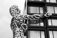 De vrouw is 24 meter lang en omarmt de zijkant van het Fragment appartementengebouw aan de Rohanske nábřeží in de wijk Karlin, vlak tegenover Invalidovna.