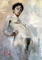 Digitaal handgeschilderd naakt. Gebruikte schildersoftware: Rebelle 7 Pro - gemengde techniek, houtskool, aquarel en olieverf en metallic verf op doek