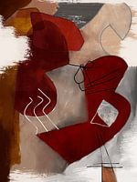 Modern abstract kunstwerk van Roberto Moro met warme rood-bruine tinten en grafische elementen.
