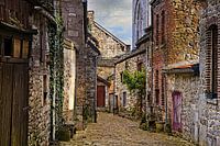 Collage van verschillende foto's gemaakt in het Waalse historische stadje Limbourg gelegen op een berg in de Belgische Ardennen.
