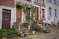 Pittoreske historische gevels van de huizen langs het centrale plein van het stadje Limbourg in de Belgische Ardennen.