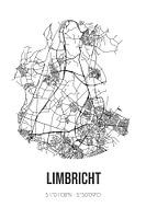 Zwart-witte landkaart, stratenplan of plattegrond van Limbricht. Limbricht is gelegen in de gemeente Sittard-Geleen, provincie Limburg. Op de stadskaart zijn alle openbare wegen in Limbricht opgenomen. Verder is de kaart voorzien van de coördinaten van het centrum van Limbricht.