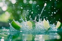 Frisse spetters en heldere limoenen geven de kamer een dynamische energie. De heldere, levendige sfeer die het borrelende water creëert, brengt een vleugje natuur en verfrissing. Ideaal voor in de keuken, waar het de passie voor koken en genieten weerspiegelt en vrolijke accenten zet.