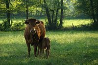 Koe met drinkend kalf. Ras Limousin