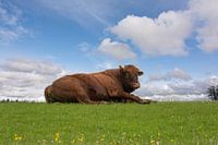Koop dit koeien kunstwerk Limousin stier van Lucia Leemans op canvas, aluminium dibond, (ingelijste) fotoprint, behang en ArtFrame, op maat geprint in Fine-Art kwaliteit.
