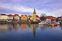 Uitzicht op de Mang toren en de oude stadshuizen van Lindau.