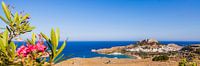 Panoramische foto van Lindos op het eiland Rhodos, Griekenland.