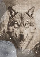 Abstract kunstwerk in zwart en beige. Het kunstwerk toont een wolf. Abstracte vormen die perfect passen bij een modern, Scandinavisch of minimalistisch interieur. Het kunstwerk is een digitale illustratie. Montage op een modern, glad materiaal zoals Dibond of staal. Acrylglas geeft het werk diepte. De illustratie komt ook goed tot zijn recht op canvas of als poster.