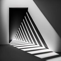 Lichtstralen vormen ritmische lijnen door een open ruimte. Een grafisch en tijdloos spel van vorm, contrast en stilte.