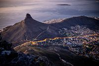 Bovenop de tafelberg heb je een prachtig panoramazicht over geheel Kaapstad. Als de avond valt licht de stad op en komen de kleuren van de levendige stad meer tot hun recht.