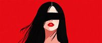 Een fascinerende wisselwerking tussen verhulling en expressie. Het gitzwarte haar omlijst een gezicht dat zowel mysterie als aantrekkingskracht belichaamt, terwijl de dramatische rode achtergrond intense energie toevoegt. Dit kunstwerk is perfect voor een moderne woonkamer, waar het kan fungeren als een indrukwekkende conversatiestarter.