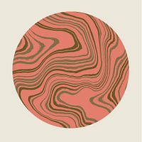 Cirkel met vloeibaar zalm roze en groen achtige strepen.