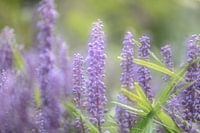 close up van paarse Liriope muscari, met een zachte meervoudige belichting, en een zachte groene achtergrond