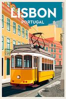 In de schilderachtige omgeving van Lissabon slingert de nostalgische gele tram zich een weg door de kleurrijke, pastelkleurige straten. De warme zon werpt zachte schaduwen op de charmante huizen, terwijl de historische charme van de stad tot leven komt. Uitnodigende ramen en een gevoel van geschiedenis maken dit tafereel tot een onvergetelijke ervaring.