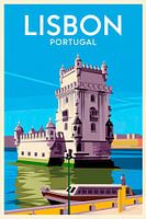 Met zijn majestueuze torens en helderblauwe achtergrond straalt de iconische Torre de Belém een heel bijzondere pracht uit. Reflecties in het kalme water, gecombineerd met een heldere hemel, geven het landschap een dromerige gratie. Een uitnodigend samenspel van geschiedenis en schilderachtige schoonheid dat de ziel van Lissabon vangt.
