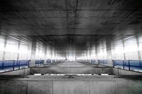 Prachtige abstracte/moderne opname van het metro stelsel in Lissabon, Portugal, met verschillende verdiepingen en veel perspectief en beton
