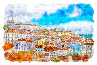 Digitaal aquarel van Lissabon, de hoofdstad van Portugal.