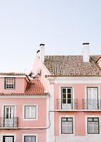Oh het prachtige Lissabon. Ik hou van deze stad. Deze roze huizen staan in de wijk Graca in deze Portugese stad. De print focust op de lijnen in de architectuur én heeft de wanderlust / reis vibes waar ik zo blij van word.
