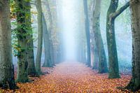 Dichte mist in de bossen van Rhenen. Het is stil en niemand te bekennen. Best een beetje eng!