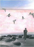 Collage: Foto, papier, verf, acryl, gevonden voorwerpen op papier.