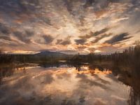 In dit digitale schilderij ontmoeten lucht, water en aarde elkaar in perfecte harmonie. De reflectie van de dramatische wolkenlucht in het stille water schept een droombeeld — bijna onwerkelijk, maar diep geworteld in de werkelijkheid van het Zweedse binnenland. Dit is Härjedalen op zijn meest poëtisch: ruig, leeg en adembenemend mooi.