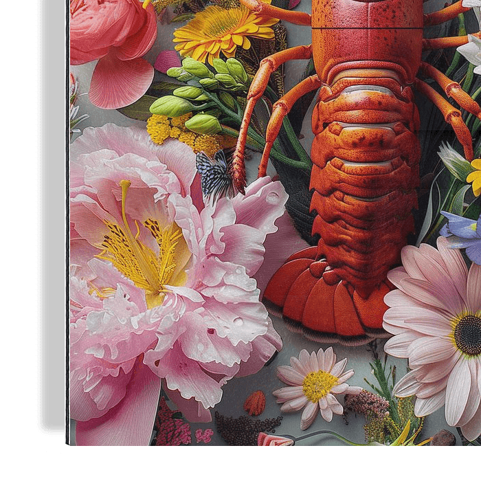 Koop dit bloemen kunstwerk Lobster Luxe - Rode KREEFT tussen de BLOEMEN van Marianne Ottemann - OTTI als print op canvas, aluminium dibond, (ingelijste) fotoprint, behang en ArtFrame. Voor jou op maat geprint in Fine-Art kwaliteit.