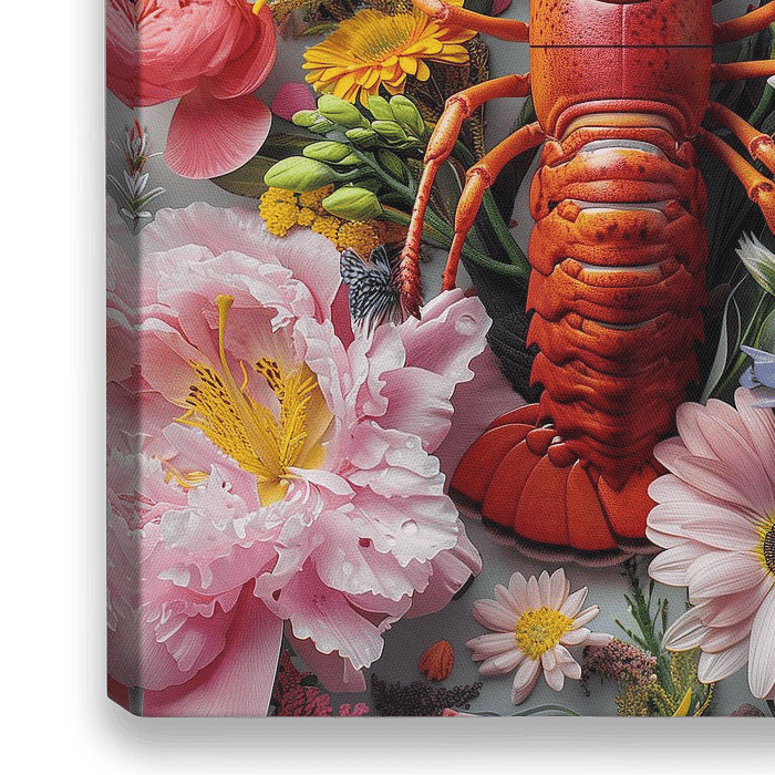 Koop dit bloemen kunstwerk Lobster Luxe - Rode KREEFT tussen de BLOEMEN van Marianne Ottemann - OTTI als print op canvas, aluminium dibond, (ingelijste) fotoprint, behang en ArtFrame. Voor jou op maat geprint in Fine-Art kwaliteit.