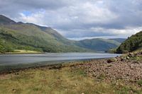 Zomeruitzicht op Loch Leven vanaf de oever bij Caolasnacon tussen Kinlochleven en Glen Coe in de prachtige Schotse Hooglanden. Reizen landschap berg fotografie.