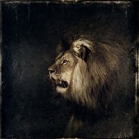 Porträt eines männlichen Löwen mit Mähne - texturierte monochrome Fotografie