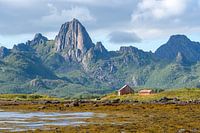 Roodkapje in wildernislandschap van Noorwegen in de regio Vesteralen ten noorden van de Lofoten.