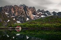 Een klein vissershuisje (rorbuer) op de Lofoten in Noorwegen.