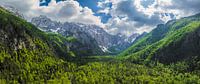 Logar Valley (Logarska dolina) in de Kamnik Savinja Alpen in Slovenië tijdens een mooie lentedag.