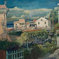 Koop dit schilderij Loggos gezien vanaf Europa Bar van Nop Briex als reproductie geprint op canvas, aluminium dibond, (ingelijste) fotoprint, behang en ArtFrame. Voor jou op maat geprint in Fine-Art kwaliteit.