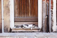 Wat is fijner dan in de lome hitte een dutje te doen. Deze Venteiaanse kat doet een powernap op de drempel.