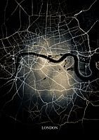 Londen - Abstracte Plattegrond in Zwart Geel Goud