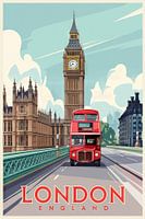 Een rode dubbeldekkerbus glijdt majestueus over de brug, terwijl de iconische Big Ben op de achtergrond waakzaam de tijd aangeeft. Grijze wolken omringen de elegante torenspitsen, terwijl de zachte zonnestralen de stedelijke charme van Londen verlichten. Een perfect beeld van de historische en moderne levensstijl die de ziel van deze unieke stad weerspiegelt.