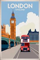 Een felrode dubbeldekkerbus rijdt majestueus langs de iconische torens van Londen, terwijl de imposante Big Ben de tijd bijhoudt op de achtergrond. De zachte wolken in de lucht en de charmante architectuur van de stad geven dit beeld een onmiskenbaar Britse sfeer die inspireert tot dromen over avonturen in de hoofdstad.