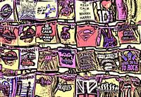 Bedrukte T-shirts gepresenteerd bij een kraam in Londen, Engeland, Verenigd Koninkrijk