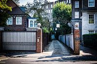 Deze fine art foto van een rustige straat in Londen, Engeland is een prachtige manier om de architectuur en de charme van de stad te waarderen. Het beeld toont statige huizen, een inrit, een gesloten tuinhek en bomen die samen een prachtige compositie vormen. De foto is genomen in een oude Londense woonwijk en straalt een rustieke en tijdloze sfeer uit.