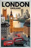 De iconische rode dubbeldekkerbussen schitteren te midden van de stedelijke elegantie, terwijl het majestueuze silhouet van de Big Ben de Londense skyline domineert. De marmeren gebouwen weerspiegelen de hartslag van de tijd, terwijl de rivier de Theems zachtjes door de stad stroomt. Een fascinerend samenspel van traditie en moderniteit betovert de kijker.