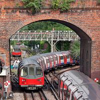 Een wirwar van metro treinen in Finchley Central, waar de Northern lijn vertakt naar Mill Hill Hill East en High Barnet.