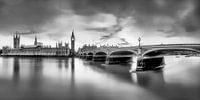 * Westminster Colours * Black & White fotografie. Zonsondergang bij Westminster Bridge in het centrum van Londen in Engeland / Groot-Brittannië in zwart-wit. Aan de overkant ziet u het Palace of Westminster en de Big Ben, een van de bezienswaardigheden van Londen. 90210007ays