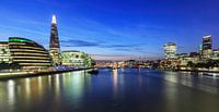 Londense skyline op de Theems op het blauwe uur