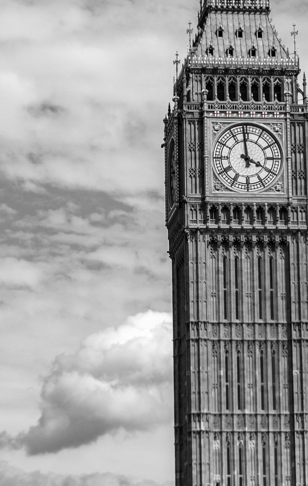 Londense telefooncel en Big Ben verticaal stadsleven, Groot-Brittannië
