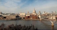 The iconic dome of St. Pauls Cathedral seen from across the River Thames. church, landmark,
