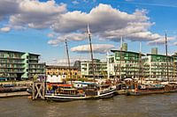 London Stadtansichten 01 - Häuser und Boote am Ufer der Themse, London