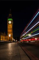 De Big Ben, een cliché als je in Londen verblijft. Hier is de karakteristieke toren tezien vanaf de Westminster Bridge road, juist terwijl er een rode Londense bus voorbij rijdt.