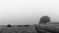 De 'eenzame boom' in de mist in het natuurgebied 'Bergerheide', onderdeel van Nationaal Park 'De Maasduinen', Nieuw-Bergen (Noord-Limburg).